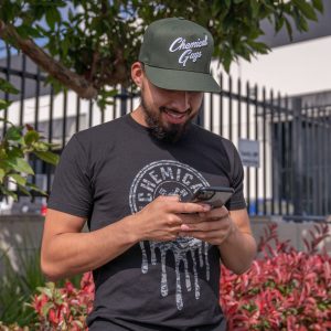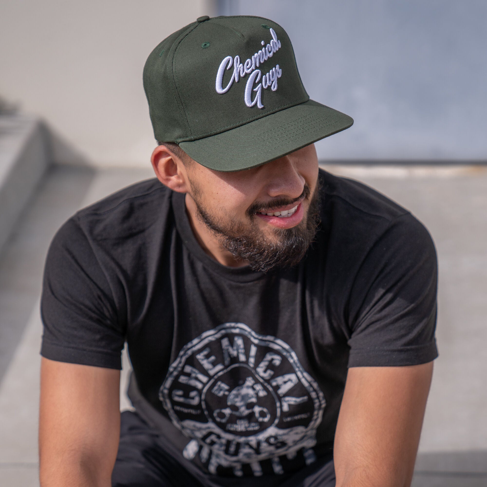 Upgrade your look with the fresh. new Snap-It-Back Olive Green Script Hat! Wear it frontwards or backwards to keep cool while detailing. and let the raised script lettering broadcast far & wide: you’re with Chemical Guys.