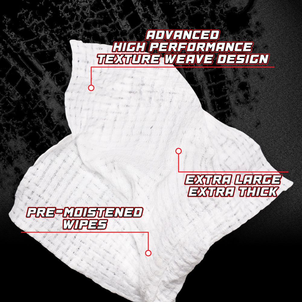 These extra-large. heavy-duty. ready-to-use pre-moistened wipes feature an advanced high-performance texture weave that restores treated surfaces leaving them with a glossy shine and a layer of protection.